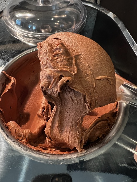 12. It should be ready to eat in 16-18 minutes with the Musso Lello 4080, less than the usual 20 minutes. I would keep a close eye on it toward the end. You don’t want the churner to get to the point where it completely stops. Turn off the chiller 30 seconds before completing the churning process. If the gelato machine shows signs of struggling to turn, it’s past done. Other gelato machines may never get it hard enough to eat and may require that you put it in the freezer for some amount of time.