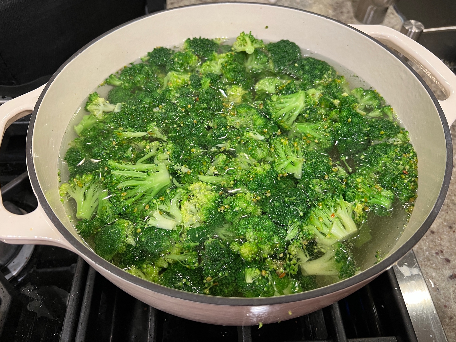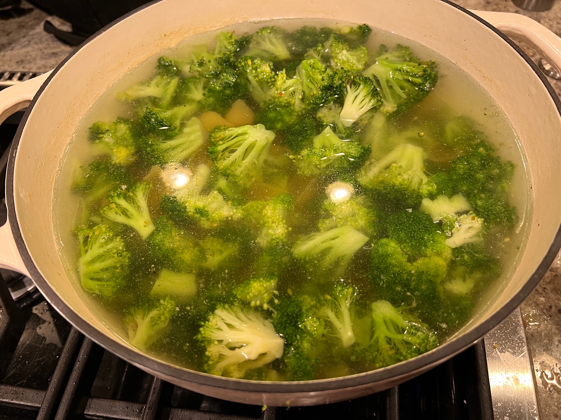 1. Boil water and then add the broccoli florets. Partially cook them for 5 minutes. Leave the broccoli in the water when you add the macaroni shells to the water. Some family members like to remove the broccoli part-way through, but our immediate family prefers a more amalgamated texture. Cook the macaroni for the time recommended on the package.