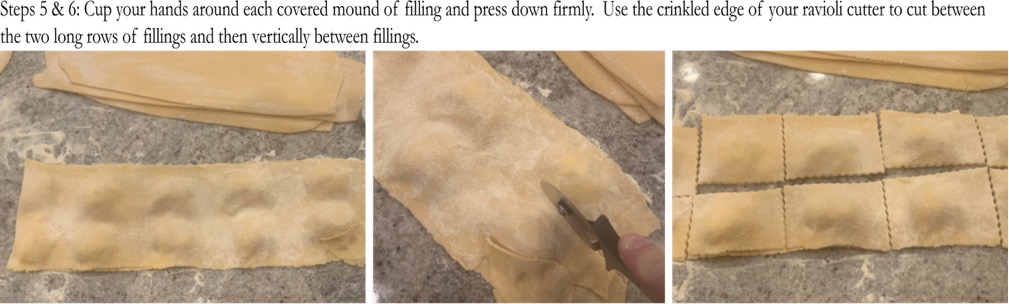 7. Use the crinkled edge of the pasta cutter to cut straightl lines between the fillings. Be very careful not to get too close to any filling.